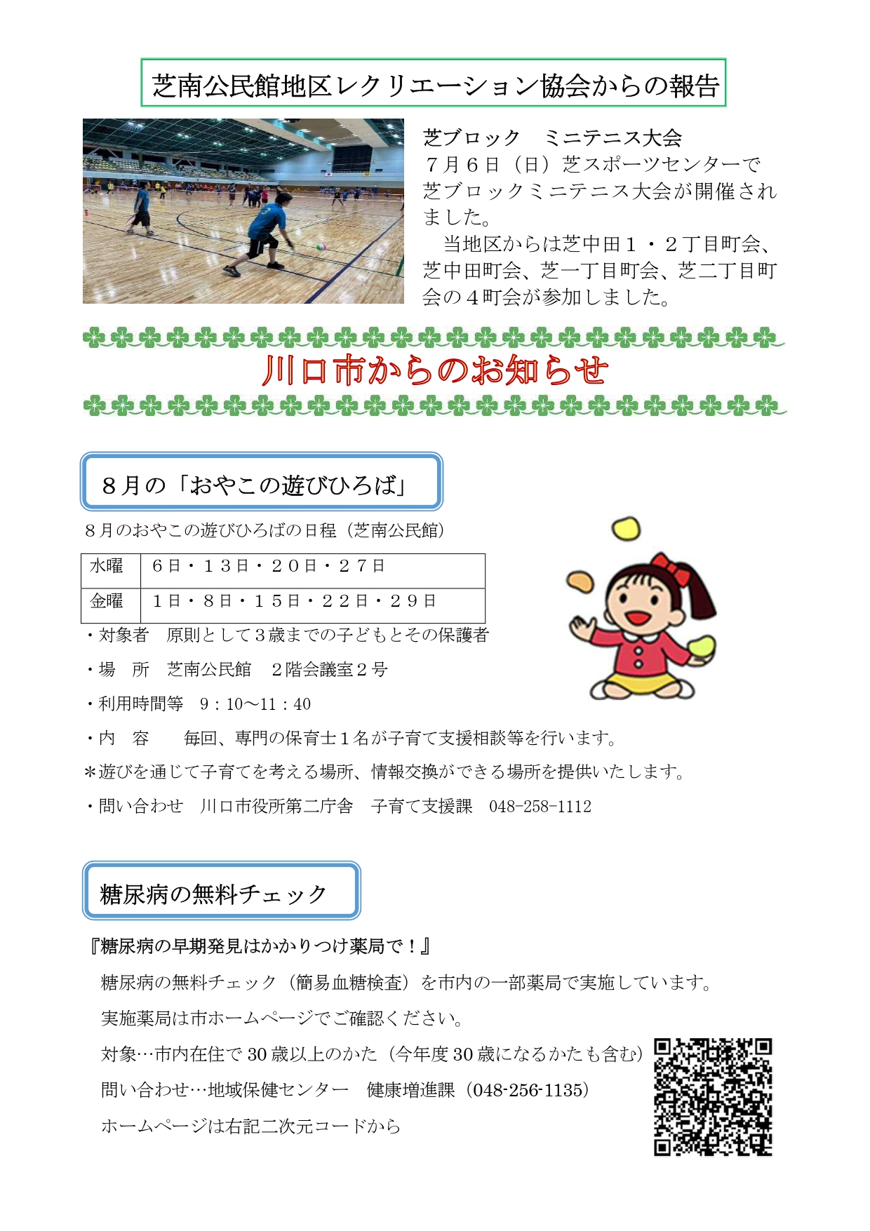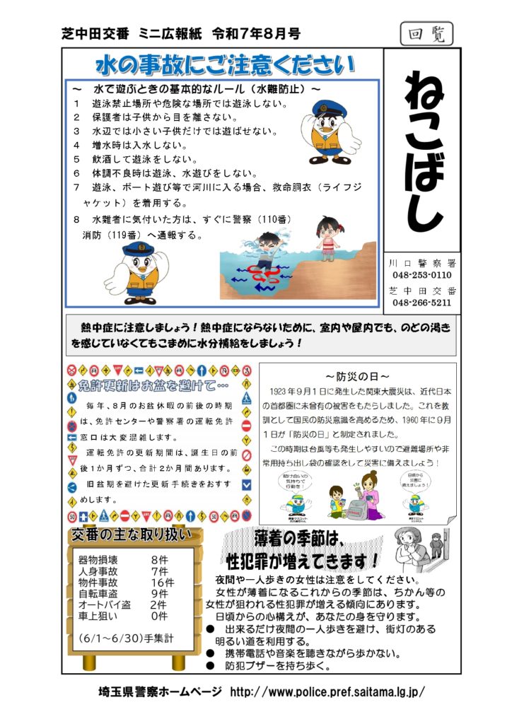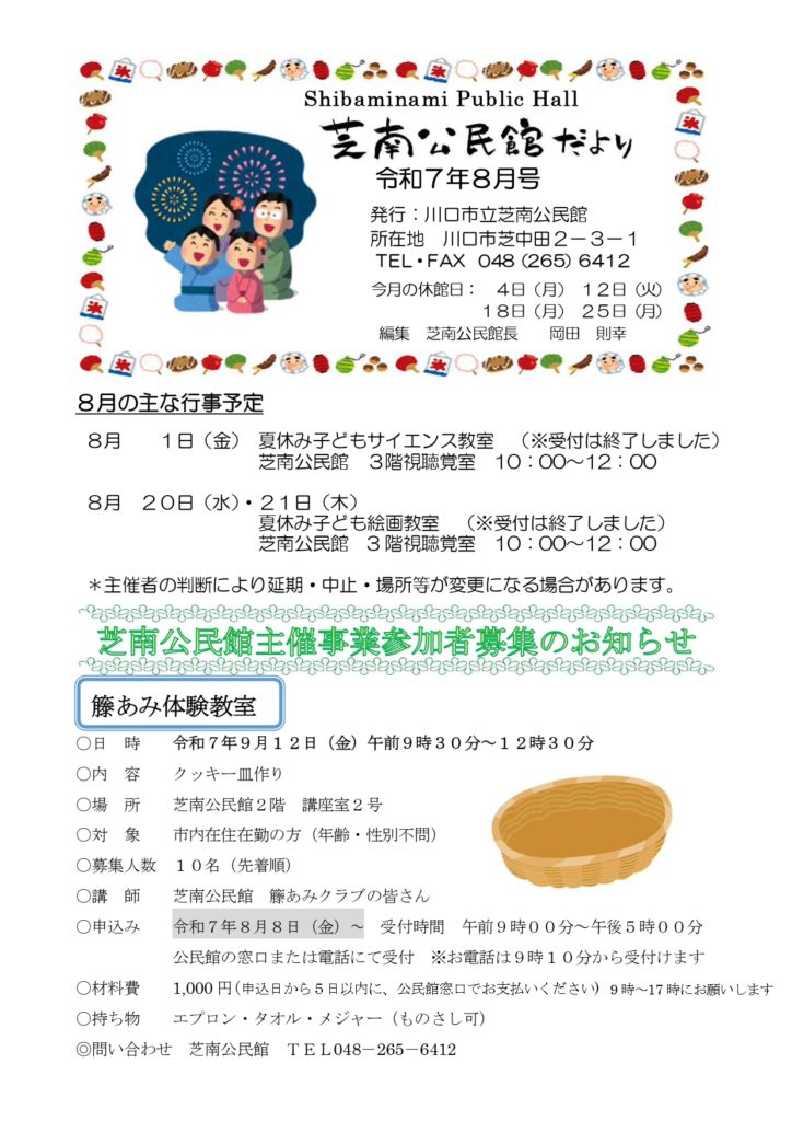 2025年8月4日 / 最終更新日時 : 2025年8月4日 shibanakada1-2 電子回覧板 2025年8月・電子回覧板 町内回覧板て次に回さないとゆっくり読む事が出来ませんがホームページ上にアップする事でいつでも読む事が出来ますね。 今後共 電子回覧板をご利用頂ければ幸いです。 目次 芝南小だより 8月号 櫻雲(芝中だより) 8月号 芝南公民館だより 8月号 ねこばし(芝中田交番 ミニ広報紙)8月号