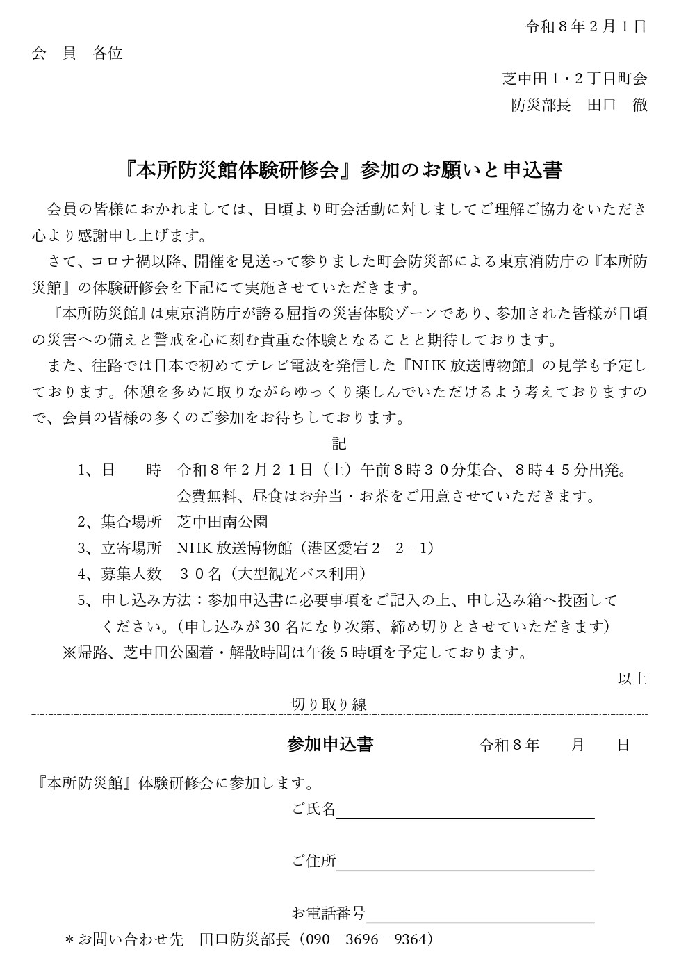 防災部「防災研修会」参加のお願いと申込書(会員向け) 令和8年2月1日_page-0001