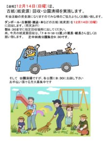 【速報】1月11日(日)は、 古紙(紙資源) 回収・公園清掃を実施します。