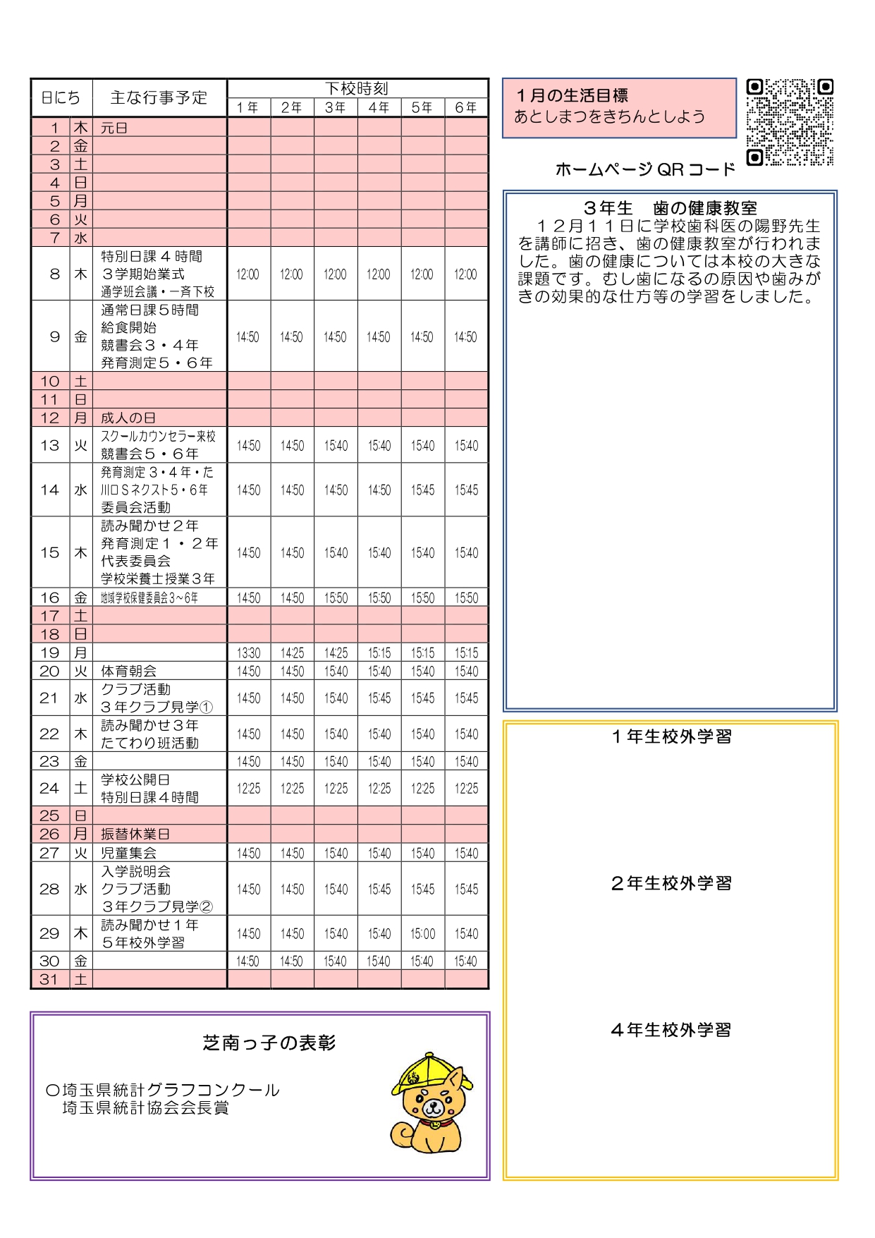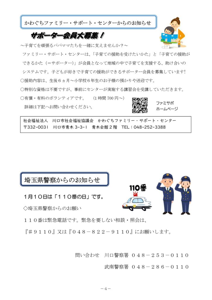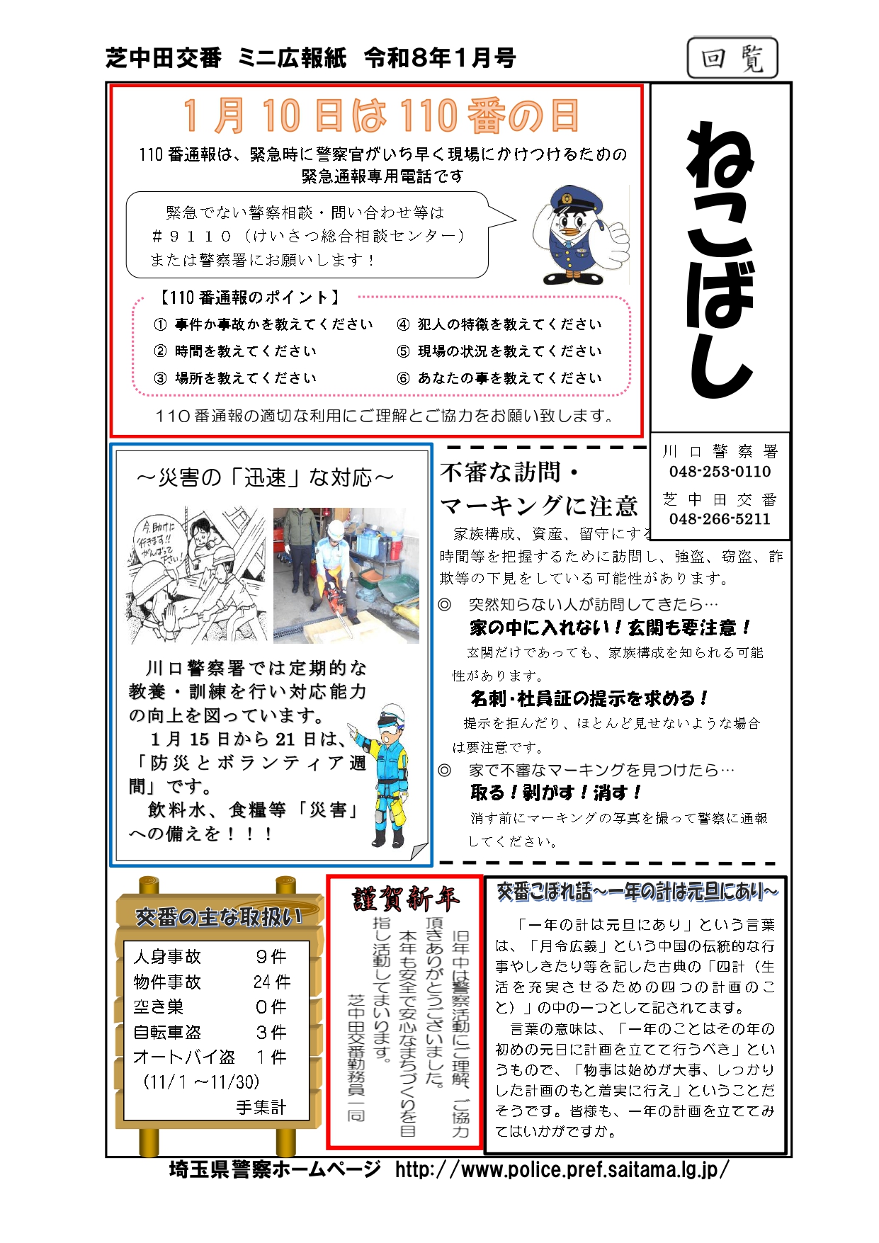 2026年1月9日 / 最終更新日時 : 2026年1月9日 shibanakada1-2 電子回覧板 2026年1月・電子回覧板 町内回覧板て次に回さないとゆっくり読む事が出来ませんがホームページ上にアップする事でいつでも読む事が出来ますね。 今後共 電子回覧板をご利用頂ければ幸いです。 目次 芝南小だより 1月号 櫻雲(芝中だより) 1月号 芝南公民館だより 1月号 ねこばし(芝中田交番 ミニ広報紙)1月号