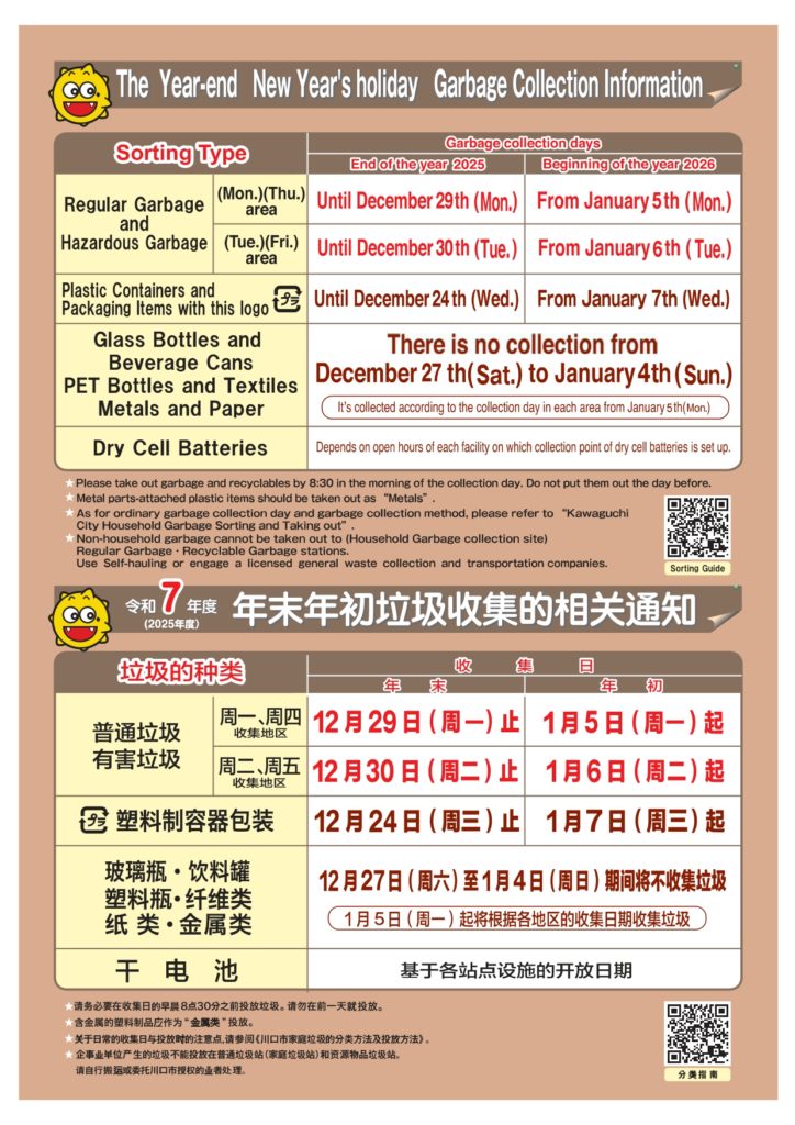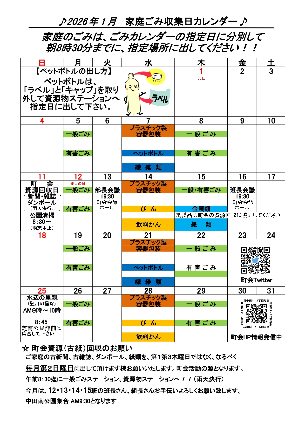 2026年1月 家庭ごみ収集カレンダー