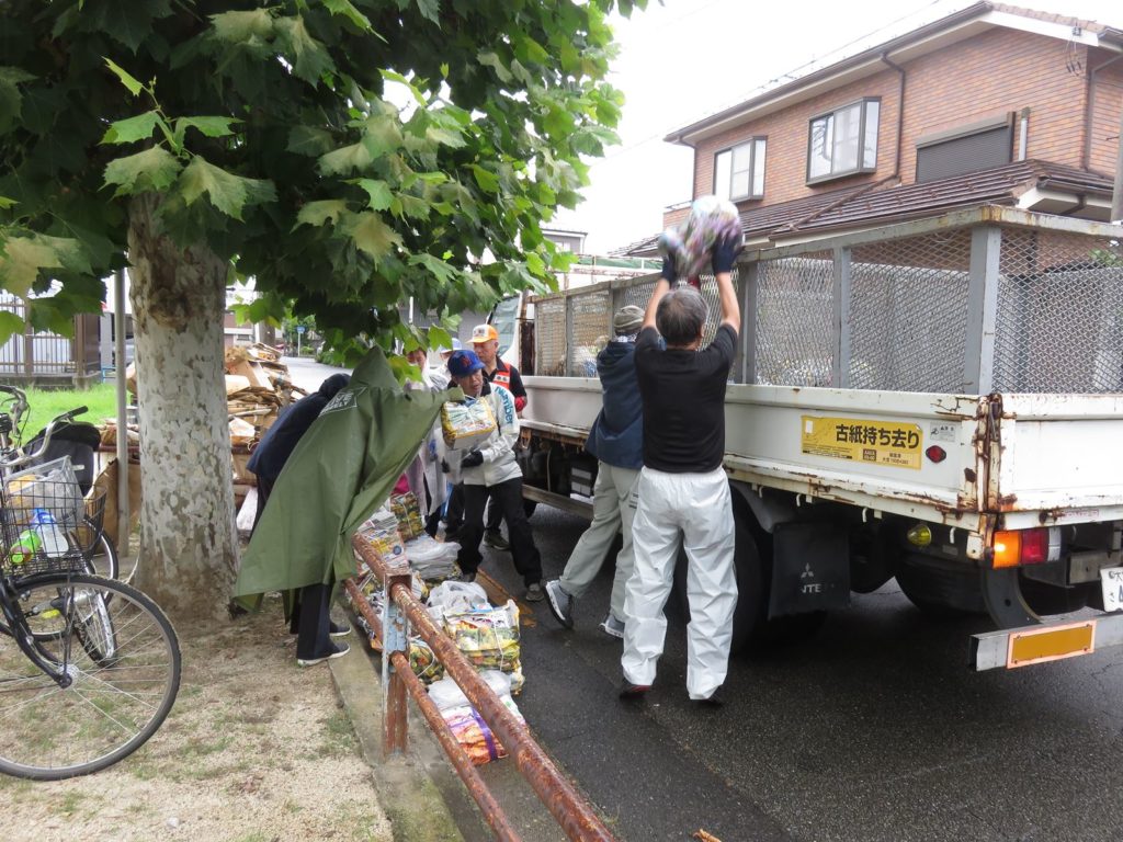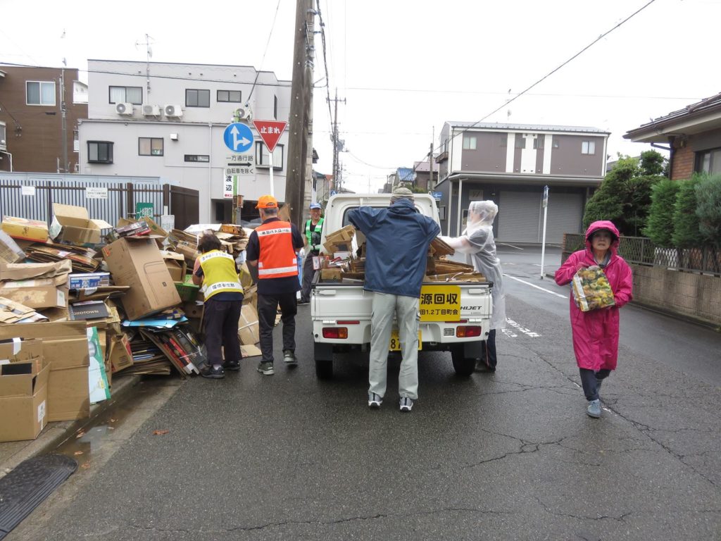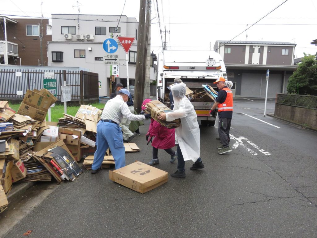 8月10日(日)小雨の中、町会紙資源回収を実施してた。